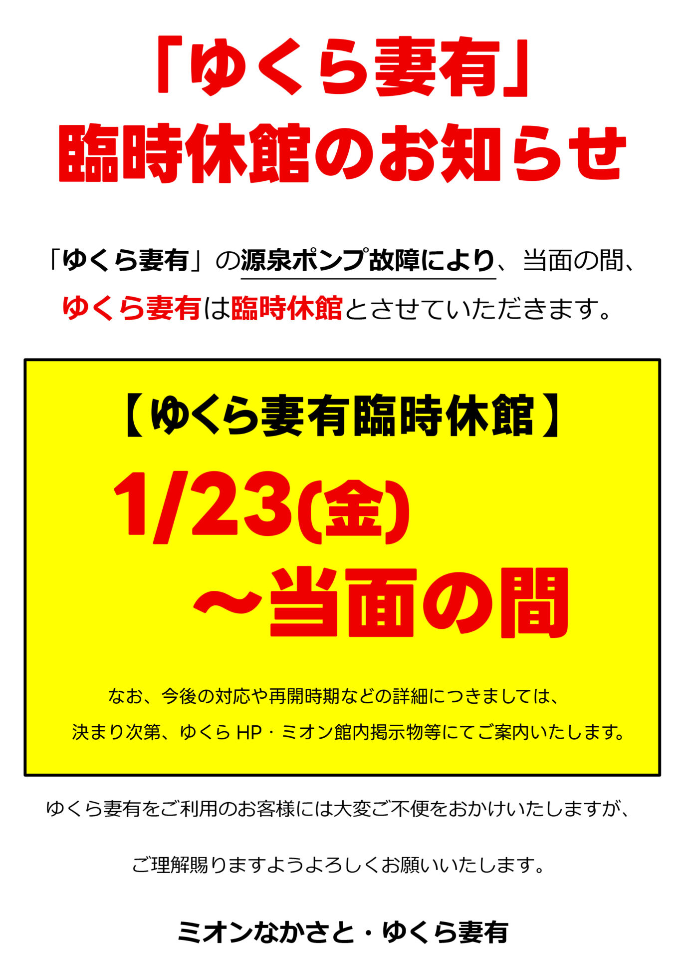 【ゆくら妻有】ポンプ故障による臨時休館のお知らせ